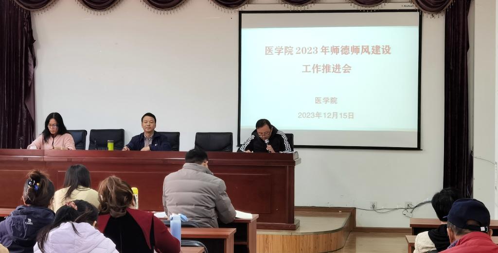 12月15日下午,医学院党委召开师德师风建设工作推进会议。学院党委书记张培宏领学了习近平总书记关于师德师风建设的重要论述,传达学习了全省教育系统师德师风建设工作推进视频会议和beat365英国官网2023年师德师风建设工作推进会精神。医学院及校医院全体教职工参加会议。