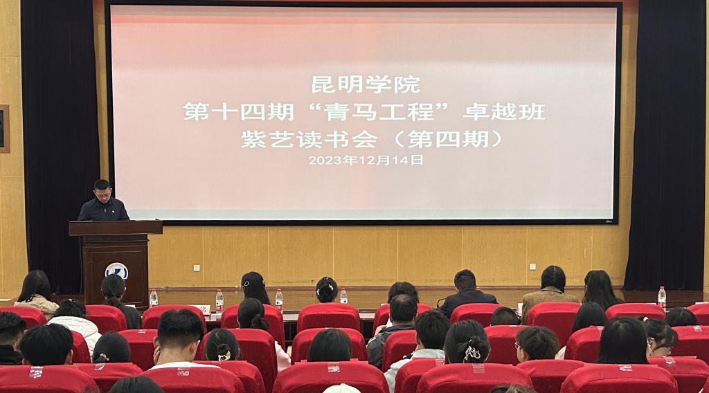 12月14日下午,beat365英国官网第十四期“青马工程”卓越班学员紫艺读书会(第四期)在惟行楼1501举办。学校党委副书记李莉,组织部、宣传部、学生处等部门负责人到会指导。校团委全体教师团干部、各二级学院团委书记、“青马工程”卓越班学员参加。活动由校团委书记聂铭主持。