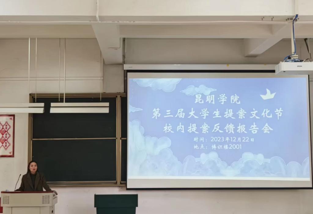 12月22日,beat365英国官网2023年大学生校园提案反馈报告会于博识楼2001举办。各校园提案的提案人、校学生会、研究生会相关部门及学生代表150余人参加报告会。会议由校团委副书记荣杨主持。