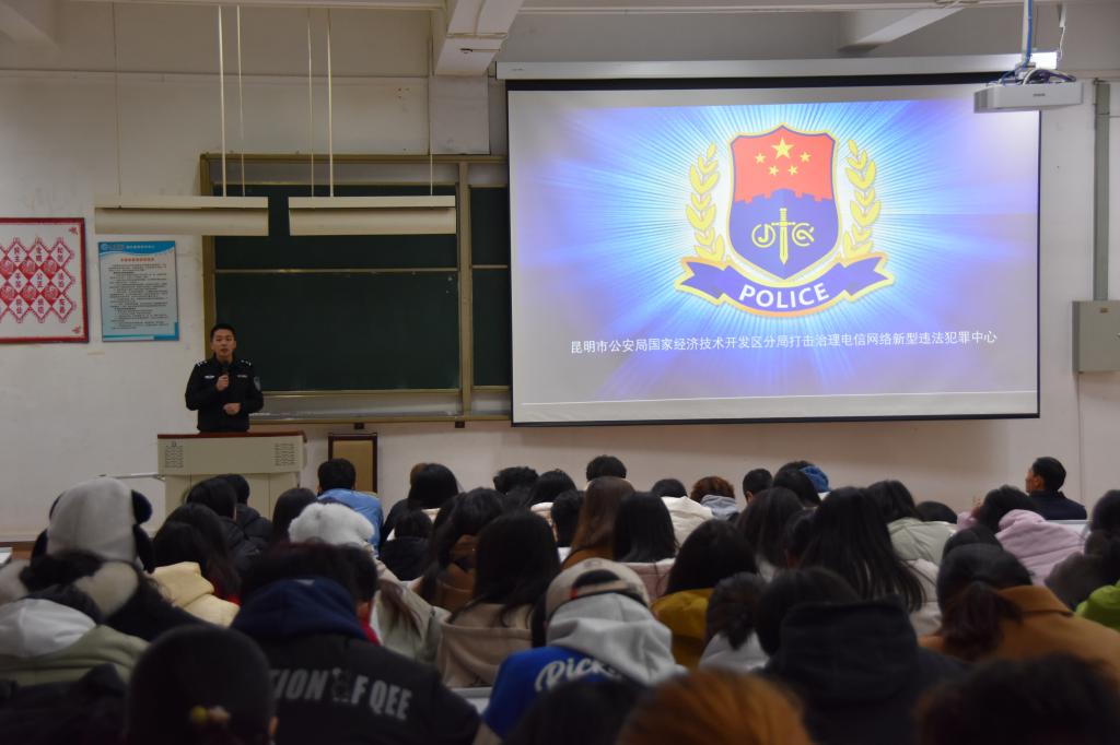 近日,为深入推进普法强基工作,进一步提高学校师生的法治意识和反电信网络诈骗意识,阿拉社区联合昌宏路派出所受邀到校作防范电信诈骗专题讲座。物理科学与技术学院100余名学生参加。