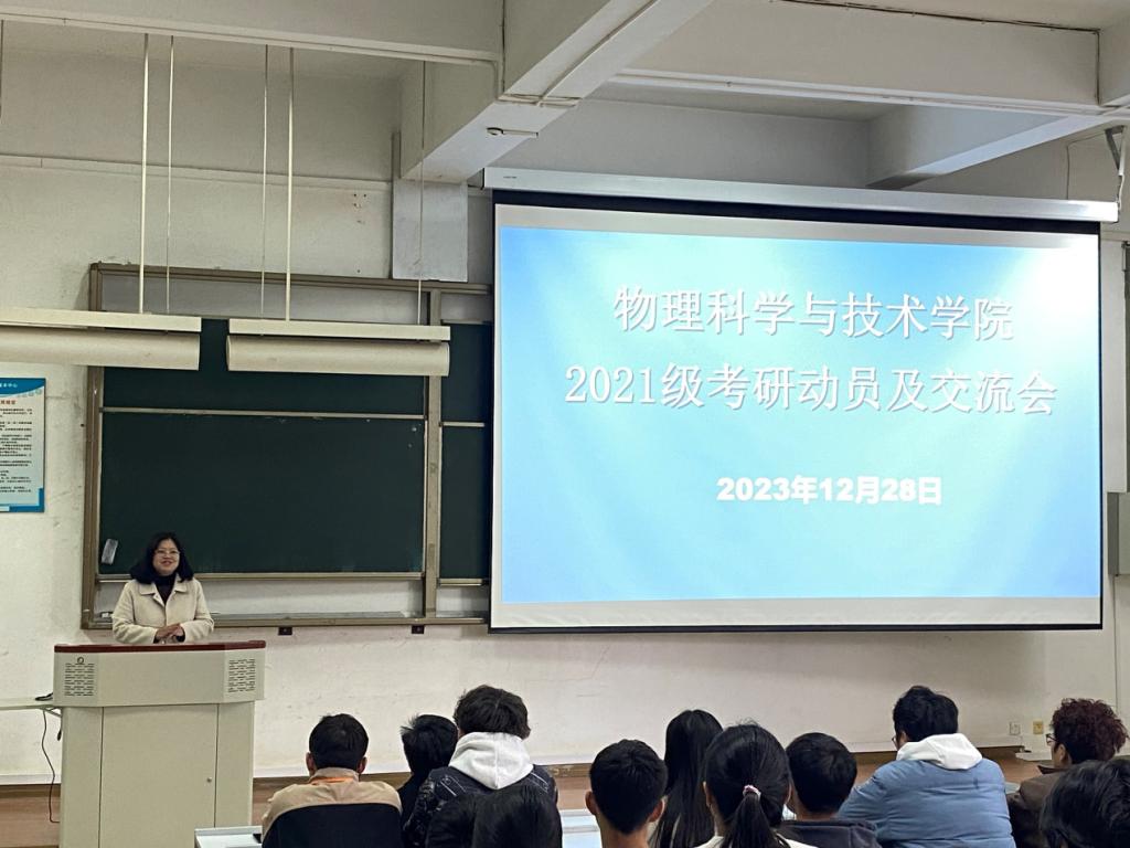 12月28日,物科学院召开2021级考研动员及交流会,帮助学生做好学业规划,鼓励学生积极参加考研,指导学生做好考研的充分准备。