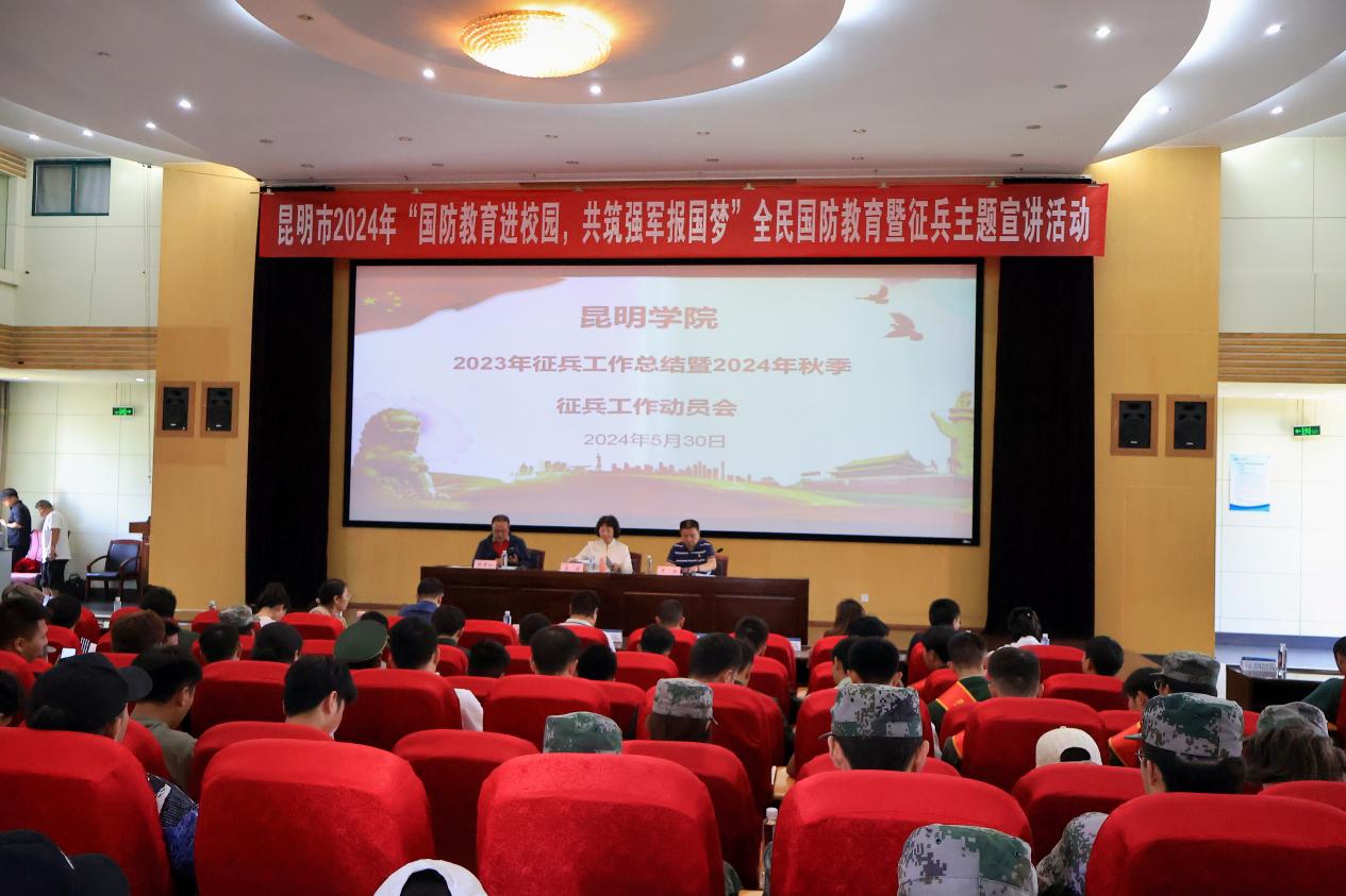 全体参会人员观看了昆明市2024年“国防教育进校园、共筑强军报国梦”全民国防教育暨征兵主题宣讲。通过观看典型、弘扬崇军尚武的优良传统,进一步激发和坚定beat365大学生献身国防、报效国家的理想和信念。