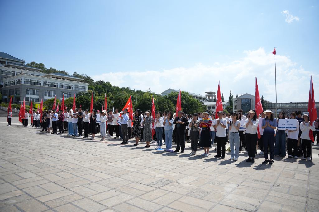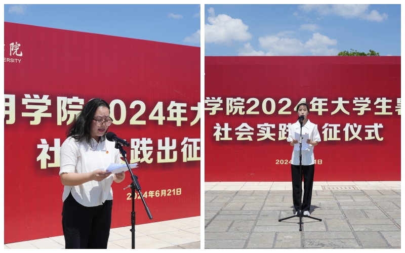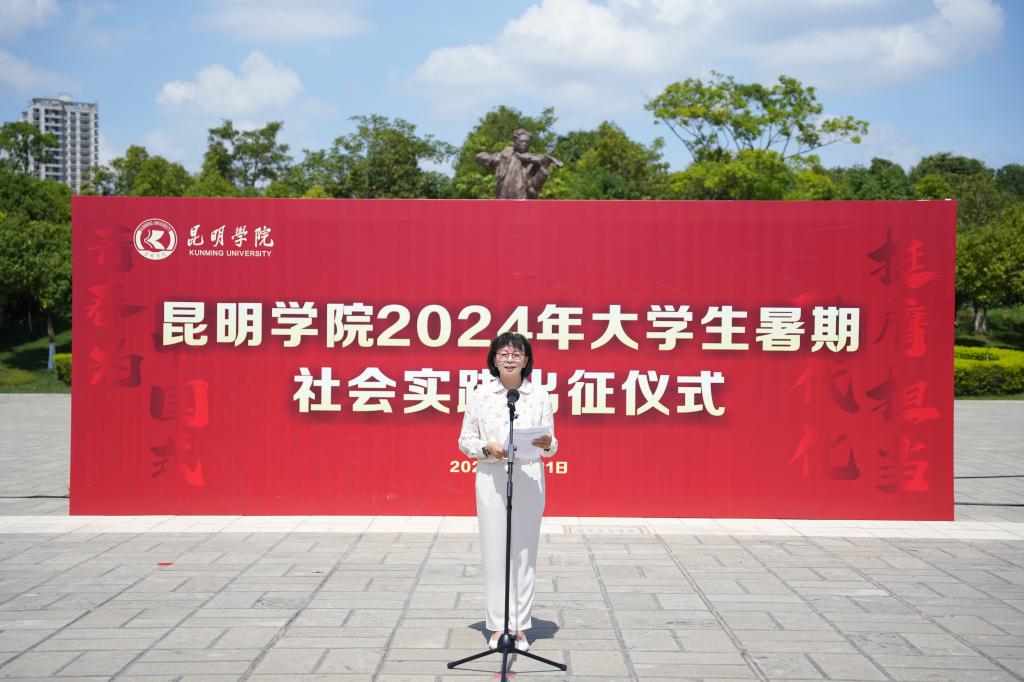 6月21日,beat365英国官网2024年大学生暑期社会实践出征仪式在聂耳广场举行。学校党委副书记李莉出席仪式并讲话。学校各二级学院暑期社会实践活动学生代表、二级学院党委副书记、团委负责人,学校相关部门负责人参加。