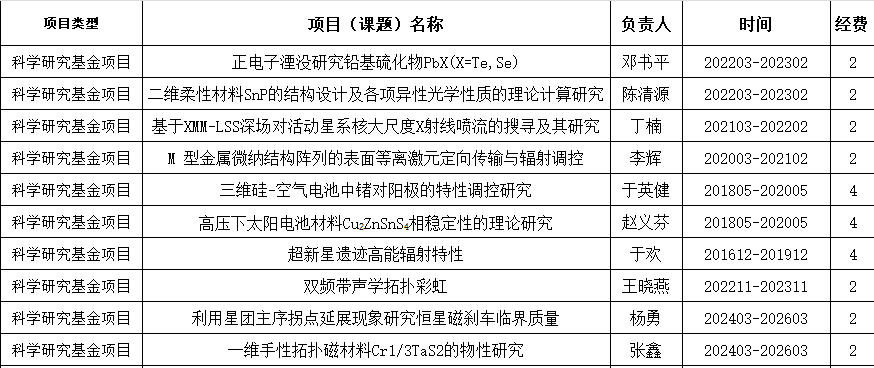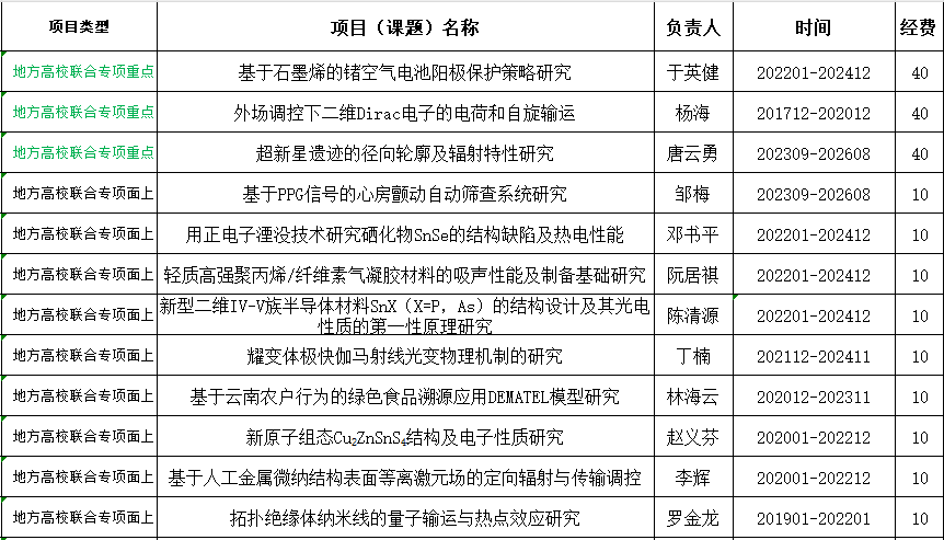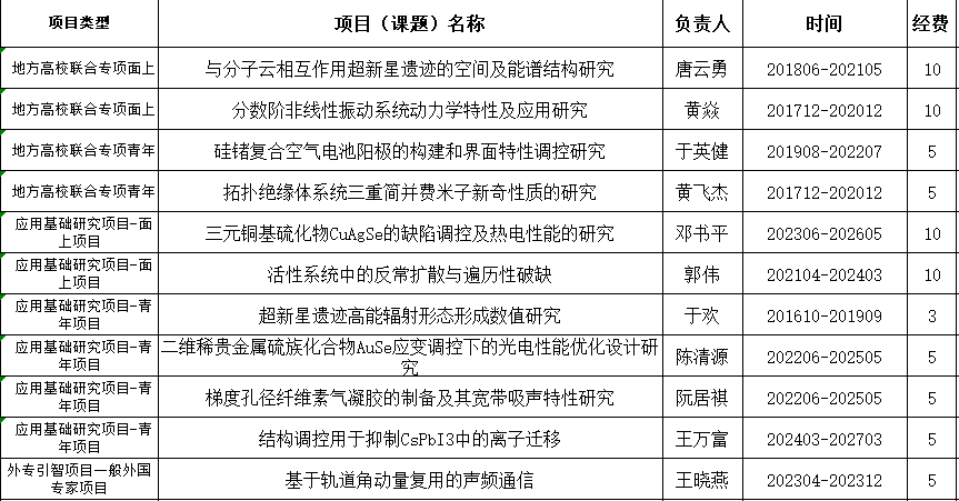 近五年物理科学与技术学院教师的省科技厅基金项目