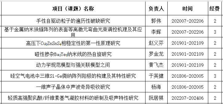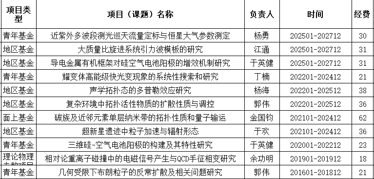 近五年物理科学与技术学院教师的国家自然科学基金项目