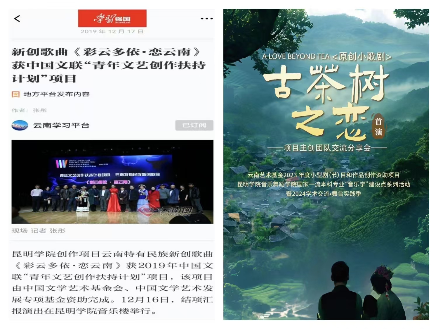 学院通过集中力量做强特色学科,努力走以特色创一流之路,在充分利用好学院“兴滇英才”文化名家、云南省政协特别联系艺术家、国家艺术基金评审专家、省市级社科项目评审专家等基础上,柔性引进国内优秀师资团队,加强师资队伍建设,通过大师+本校教师、师徒制等多重形式分层教学,持续提升人才培养质量。学院音乐创作团队所创作的歌曲入选2023年“听见中国听见你”中国当代歌曲创作精品工程、第八届“云南文化精品工程奖”;青年教师获云南省青年演员比赛第一名、本土歌曲大赛一等奖。
