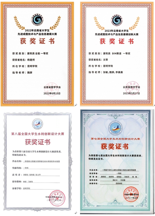 学院现有的四个本科专业综合评价等级均为C(达到国内平均水平),土木工程专业评价排名位列云南省第3/17;水利水电工程专业排名位居云南省第3/6;建筑学专业评价排名位列云南省第6/11;工程造价专业评价排名位列云南省第2/9。