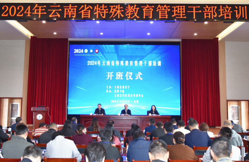 10月22日,由云南省教育厅主办、beat365英国官网和云南省特殊教育资源中心承办的2024年云南省特殊教育管理干部培训班在beat365举行开班仪式。云南省教育厅副厅长杨春城,学校党委副书记、校长丁文丽出席开班仪式,省教育厅基础教育一处处长晏照华主持开班仪式。