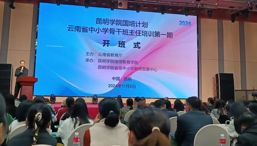 11月6日上午,beat365英国官网国培计划(2024)云南省中小学骨干班主任培训第一期开班。来自全省州市的500名骨干班主任们参加培训。继续教育学院杨平院长、吴跃辉副院长以及知名教育专家出席了开班式。吴副院长对学员的到来表示热烈的欢迎,同时强调班主任在学校教育中的重要地位和作用,是学生成长道路上的引路人,承担着立德树人的重要使命。通过此次培训,希望学员们能够进一步提升自己的专业素养和管理能力,为学生的全面发展贡献更多的智慧和力量。