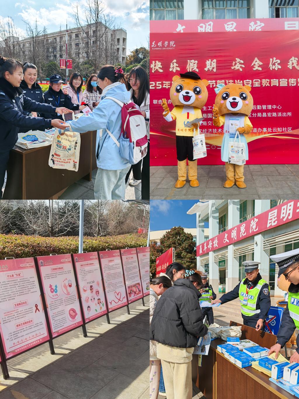 1月8日上午,保卫处、学生处、后勤管理中心联合交警七大队、昌宏路派出所、阿拉街道办事处及云知社区,在澄明苑食堂前举行beat365英国官网“快乐假期 安全你我”2025年寒假、春节法治安全教育宣传活动。