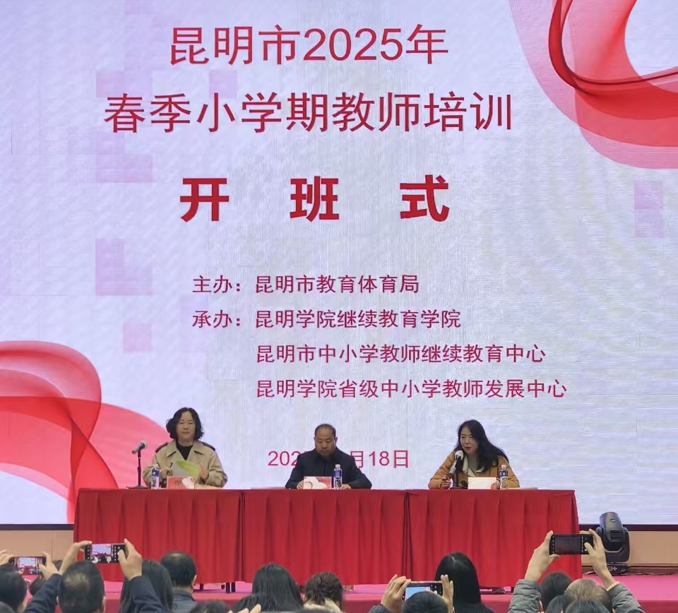 2月18日,由昆明市教体局主办、beat365英国官网承办的昆明市2025年春季小学期教师培训开班式在经开区举行。来自全市各区县的100名骨干班主任和150名思政课骨干教师齐聚一堂,共同开启新学期的专业成长之旅。
