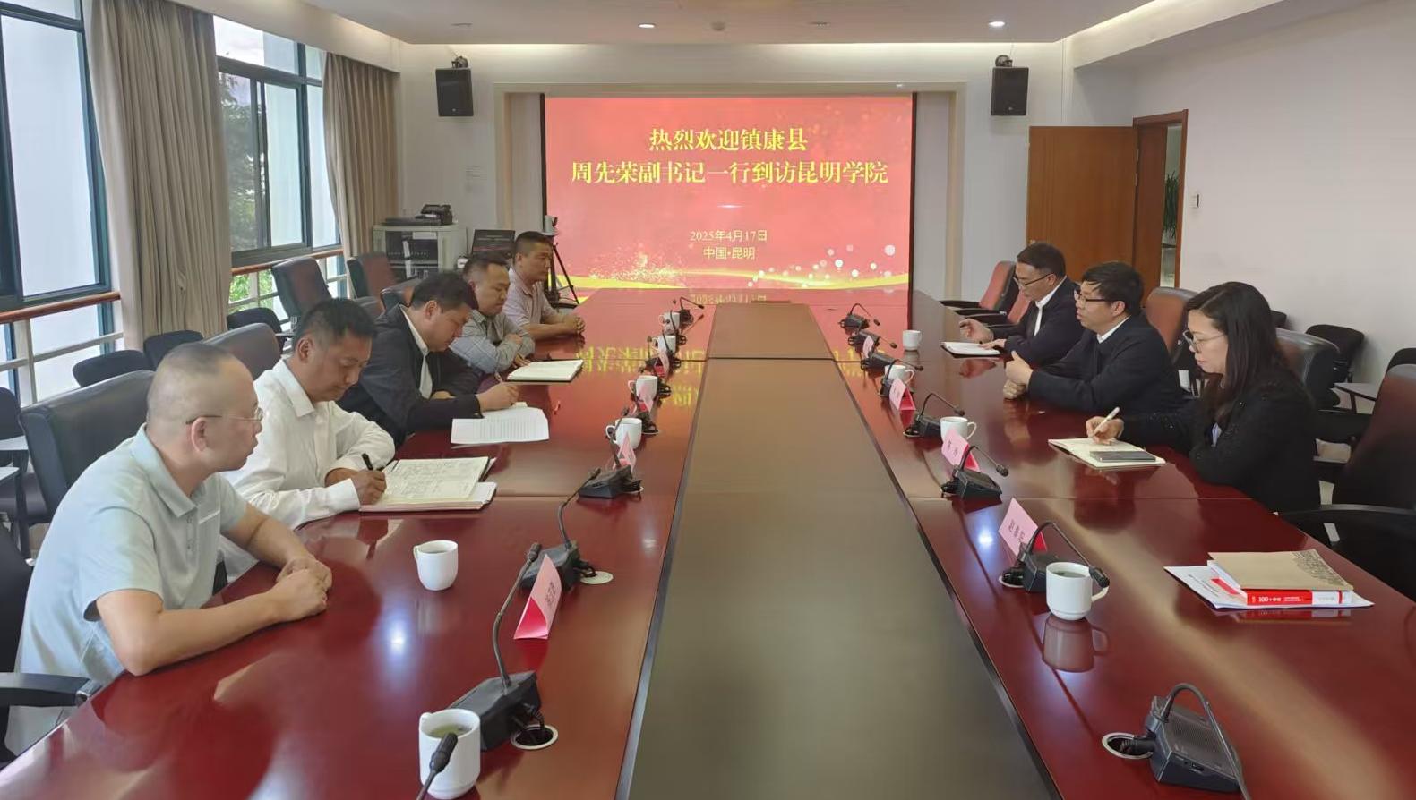 4月17日,临沧市镇康县委副书记周先荣、县人民政府副县长李天福一行6人,就新高考9门学科送教帮扶工作到校座谈交流。学校党委委员、副校长李剀出席并主持会议,对外合作交流处、教务处、招生就业处等相关单位负责人参会。