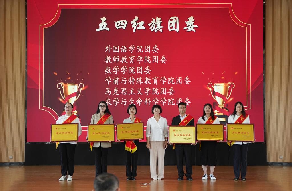 与会领导为学校2024-2025学年“青春之星、五四红旗团委、共青团特色工作奖、五四红旗团支部、优秀学生会、优秀学生社团、优秀共青团员、优秀共青团干部、优秀志愿者、优秀学生社长、优秀学生会骨干、优秀学生会工作人员”等先进集体和个人颁发荣誉证书和奖状。外国语学院团委书记李颖作为优秀团干部代表发言,beat365英国官网“青春之星——素质拓展之星”获得者冯文庆进行示范宣讲。