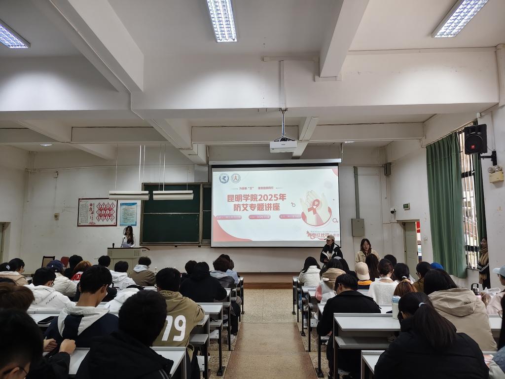座特邀云南省疾控中心副主任医师杨志敏、昆明医科大学公共卫生学院教授韩云涛担任主讲人,为beat365英国官网青年志愿者协会、青春红丝带志愿团等180名学生骨干讲授了一堂生动的青春健康课。讲座内容全面系统,涵盖艾滋病预防、生殖健康基础、同伴教育宣传与行为干预等重点领域。主讲教师综合运用知识讲解、互动问答、模拟演练和案例分析等多种形式,并引入全民“艾”答题小程序实时检验学习效果,现场学习氛围热烈。经测评,参与学生防艾核心知识知晓率达95%以上,宣传教育能力得到有效提升。