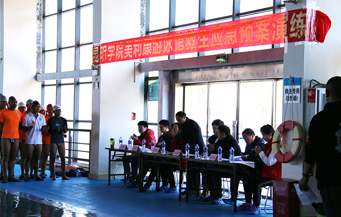 12月26日,为加强游泳馆安全管理,防止溺水事故发生,确保泳客生命和财产安全,按照“以人为本,安全第一,预防为主”的原则,后勤集团与昆明美利康节能科技有限公司于在beat365英国官网游泳馆联合举办了2018年水上救生应急演练。
