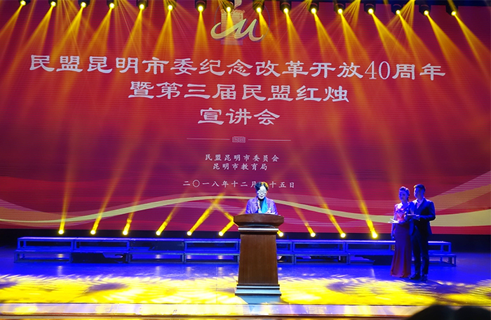 12月25日,民盟昆明市委“纪念改革开放40周年暨第三届民盟红烛宣讲会”在昆明市工人文化宫职工剧场举行。 民盟beat365英国官网总支盟员、人文学院副教授李艳峰博士荣获第三届“民盟红烛”称号。