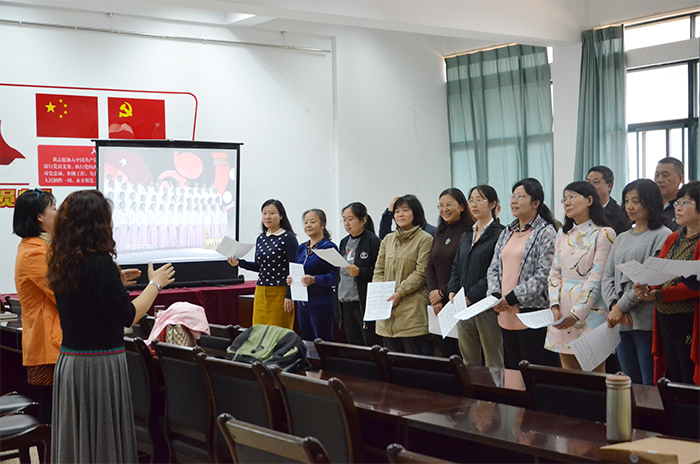 全体教师在音乐学院专业教师的指导下共同演唱了《复兴之路》,以艺术形式歌颂伟大祖国和优秀中华儿女,祝福祖国国泰民安、繁荣富强。