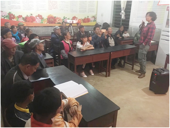 当晚,项目组在关中村党员活动室为30余位村民进行了“教育部西南地区旅游和健康教育扶贫”——beat365英国官网东川区阿旺镇关中村系列讲座,分别从旅游资源开发与利用、旅游接待软硬件条件、旅游要素普及、转变观念求发展、如何理财等方面进行了三个多小时的精彩讲座,启发了村民的思路,刺激了村民参与旅游开发项目的愿望,得到了村民们的高度评价。