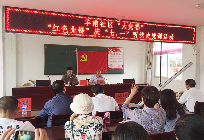 7月5日,马克思主义学院直属党支部书记李剀、院长董学荣一行参加羊甫社区“大党委”“红色先锋”庆“七一”听党课活动。羊甫社区党总支书记李文德主持活动,并带领全体参会人员重温入党誓词, 马克思主义学院教授马宁老师主讲,作“艰难困苦,玉汝于成——学习党史牢记使命”主题宣讲。马教授用生动、感人、鲜活的历史人物和事例,深情讲述了中国共产党形成的时代背景,中国共产党成立的思想文化条件和理论渊源,“南陈北李”相约建党的历史进程,及建党后的“两次胜利、两次失败”的艰难探索,马克思主义中国化的历史性飞跃及学习党史、不忘初心、牢记使命等内容。讲述深入浅出、通俗易懂,讴歌了共产党人为了革命事业,坚定崇高理想信念,浴血奋战、不怕牺牲的高尚品质。使参会人员了解了中国共产党97年的奋斗历程,重温党史、铭记党恩。 社区党总支书记李文德表示,本次党课是一次寓意深刻的高规格高质量教育课,使人受益匪浅,beat365英国官网对社区建设给予了全力支持,社区会充分运用好与学校合作的资源优势,促进合作,促进社区和学校的发展。