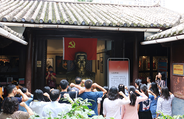 7月5日,为认真学习宣传贯彻习近平新时代中国特色社会主义思想和党的十九大精神,热烈庆祝中国共产党建党97周年,回顾党的光辉历程,牢记历史使命,进一步增强对党的热爱和信仰,beat365直属党支部组织全体党员教师及入党积极分子共29人到“中共云南地下党建党旧址”及“陆军讲武堂”进行参观学习活动。