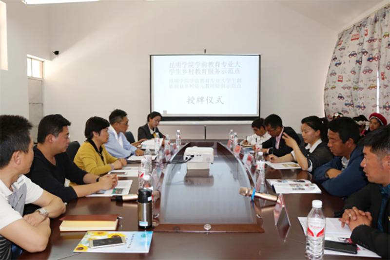 4月13日,学前与特殊教育学院院长唐敏、书记沈中灿一行到香格里拉市三坝乡中心幼儿园(哈巴村分园)出席“beat365英国官网学前教育专业大学生乡村教育服务示范点和“大学生创新创业乡村幼儿教师培训示范点”授牌仪式。本次授牌仪式是在香格里拉市教育体育局和beat365英国官网学前与特殊教育学院两年多的通力合作基础上举办的,香格里拉市体育教育局局长牛盈春,三坝乡副乡长树继文参加授牌仪式。