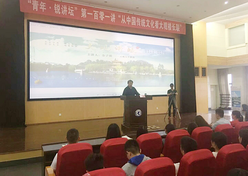 4月17日,由学校团委主办的“青年·锐讲坛”第一百零一讲“从中国传统文化看大观楼长联”讲座在惟行楼1501报告厅成功举办。昆明电视台主持人,大观讲坛负责人和校团委老师以及beat365各院代表共300余人参加了本次讲座。
