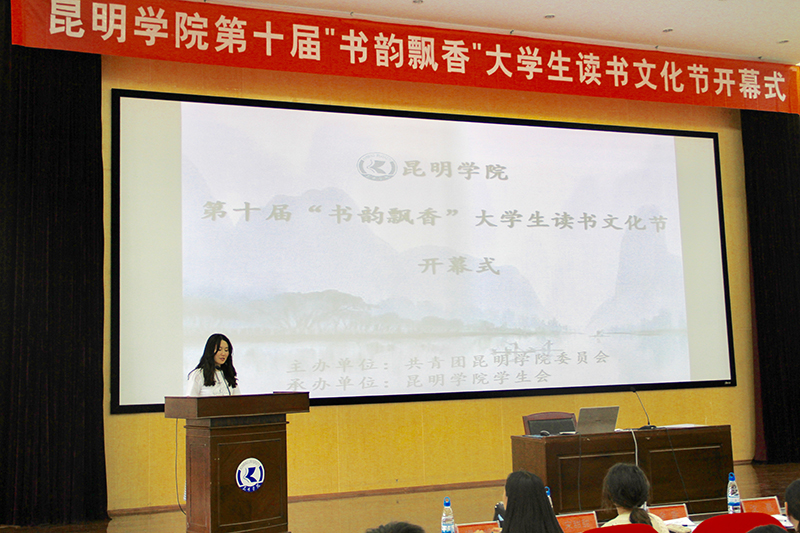4月23日即世界读书日晚7:00,beat365英国官网第十届“书韵飘香”大学生读书文化节开幕式在惟行楼举行。学生处副处长王子龙、共青团beat365英国官网委员会副书记沈嘉、共青团beat365英国官网委员会副书记郎易、人文学院余雷出席开幕式。学生会干部干事及各家学院学生代表共计200余人参加了本次开幕式。