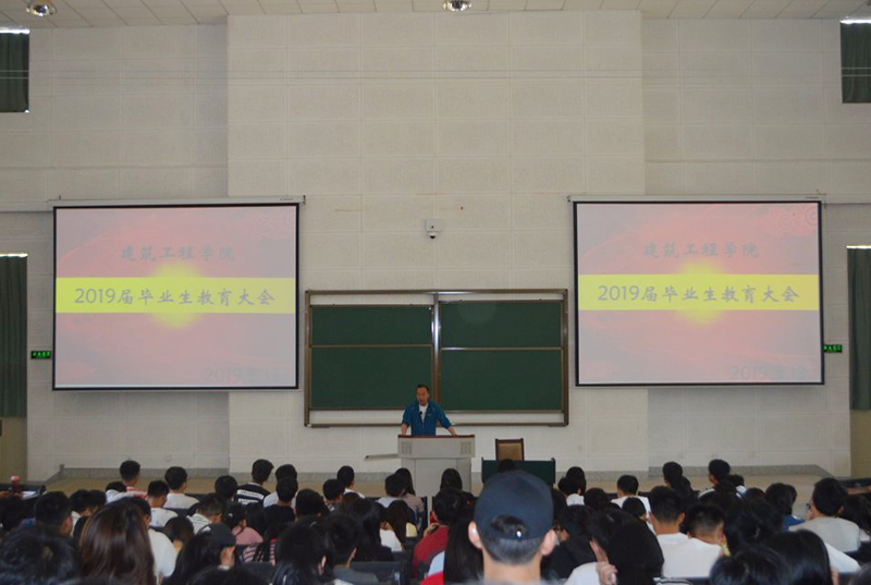 5月13日,建筑工程学院在博雅楼3101教室召开2019届毕业生教育大会。学院党总支书记徐从发、院长莫南明、杨光华副院长以及院系其他领导,2019届年级辅导员、各班班主任、全体毕业生300余人参加了本次大会。