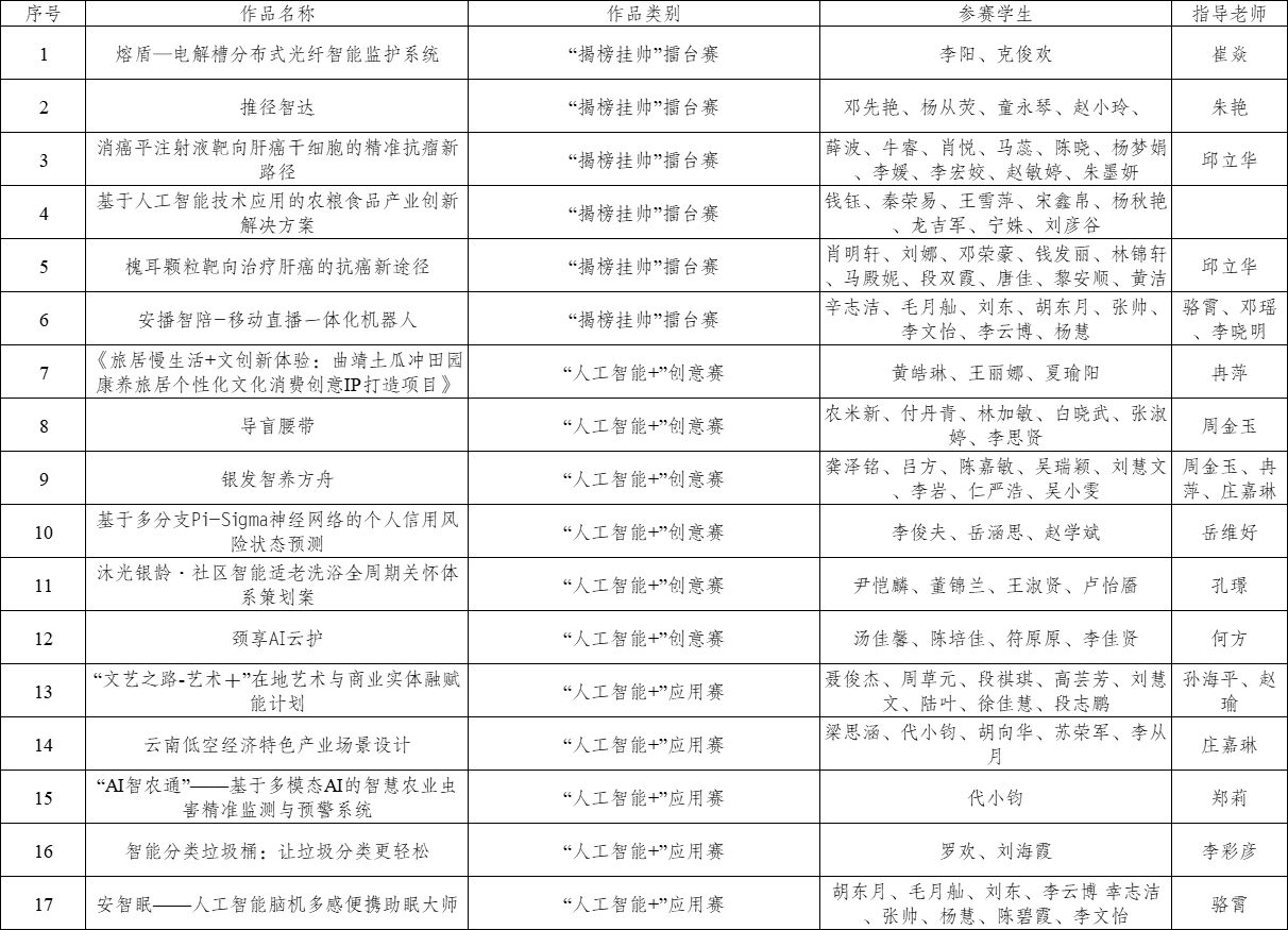 为全面落实科教兴国战略、人才强国战略、创新驱动发展战略,充分激发beat365青年学子创新潜能与创造活力,推动理论知识与实践应用深度融合。beat365英国官网于2025年6月-7月积极动员青年学子报名参加2025年“挑战杯”全国大学生课外学术科技作品竞赛“人工智能+”专项赛和“揭榜挂帅”擂台赛,经过遴选最终确定推报6个项目参加“揭榜挂帅”擂台赛,推报11个项目参加“人工智能+”专项赛,现将参赛作品情况予以公示。