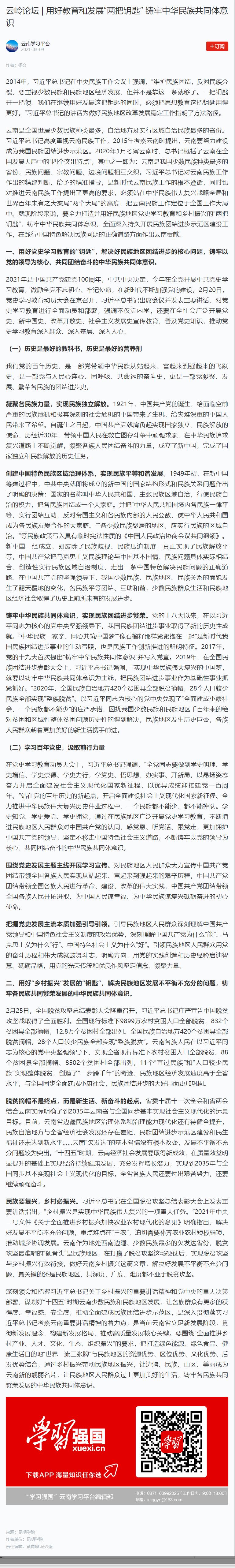 云岭论坛 | 用好教育和发展“两把钥匙” 铸牢中华民族共同体意识