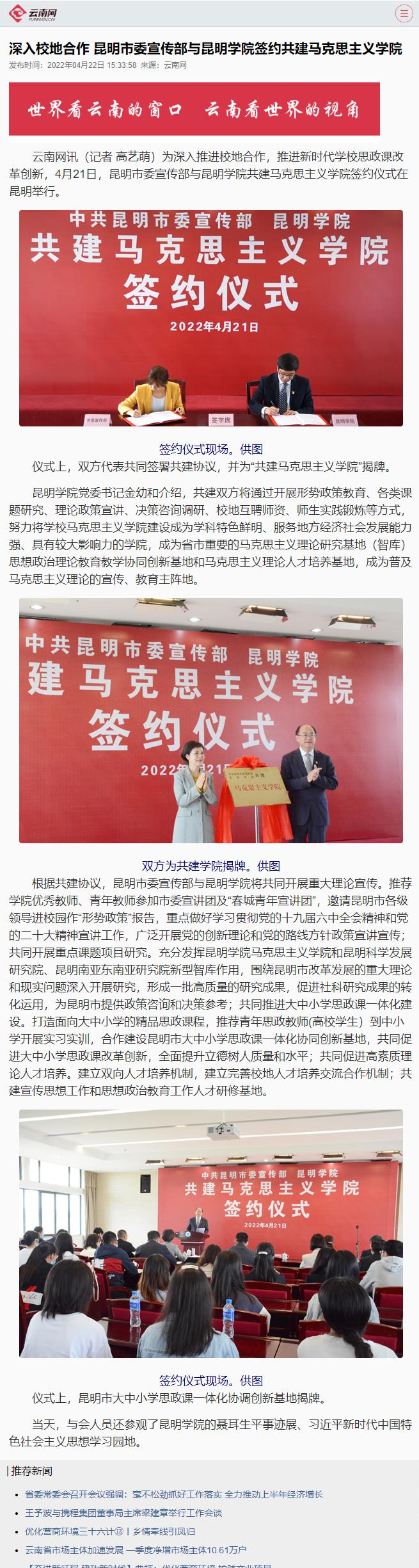 深入校地合作 昆明市委宣传部与beat365英国官网签约共建马克思主义学院