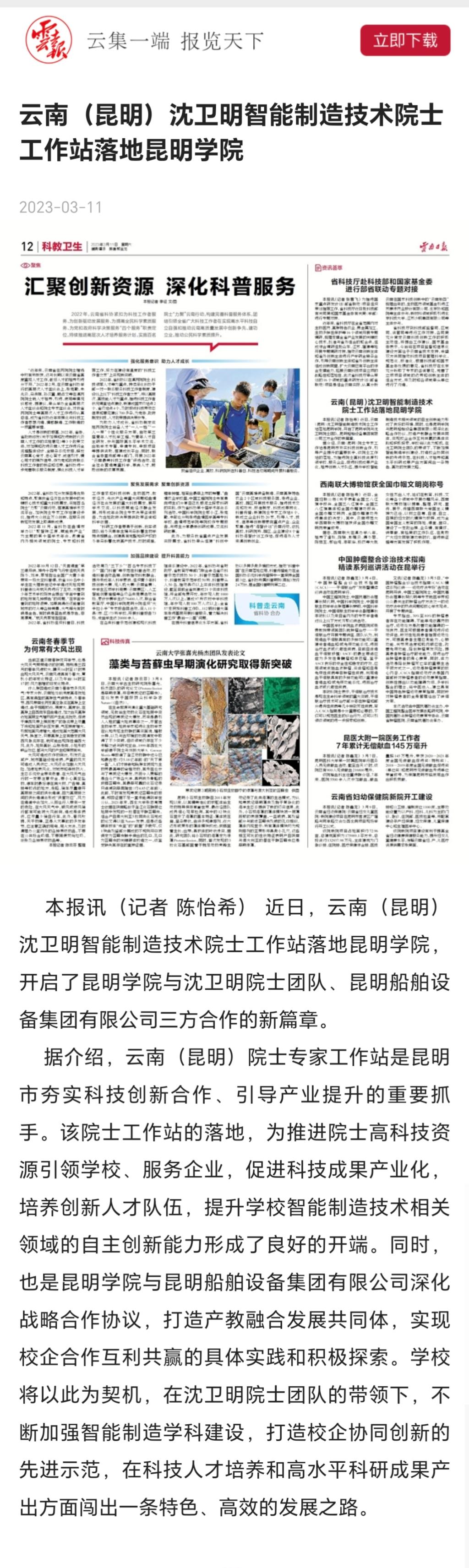 云南(昆明)沈卫明智能制造技术院士工作站落地beat365英国官网