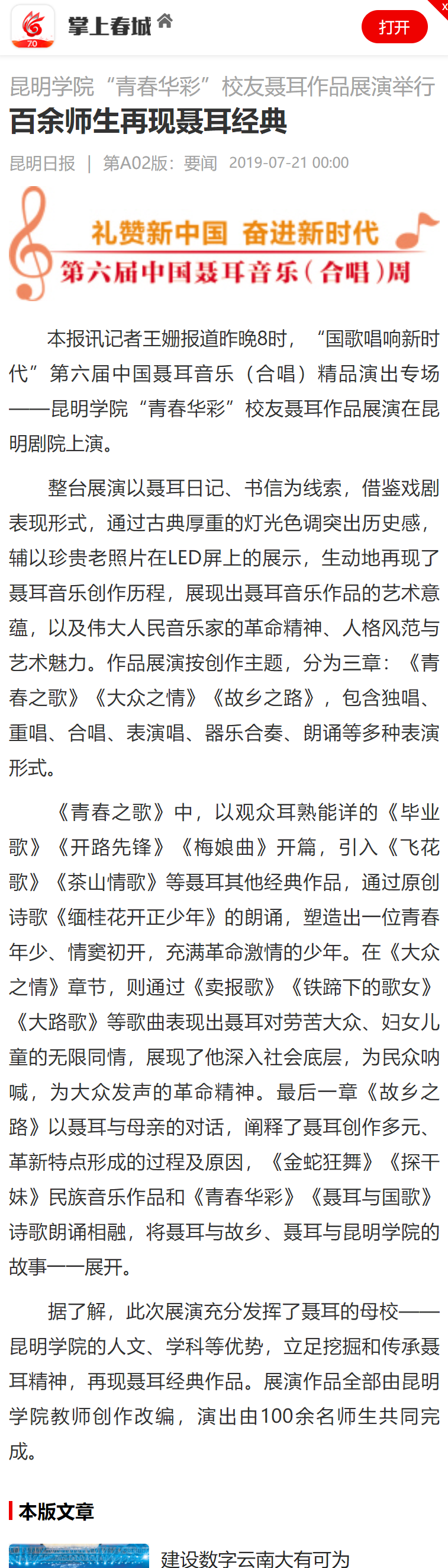 beat365英国官网“青春华彩”校友聂耳作品展演举行