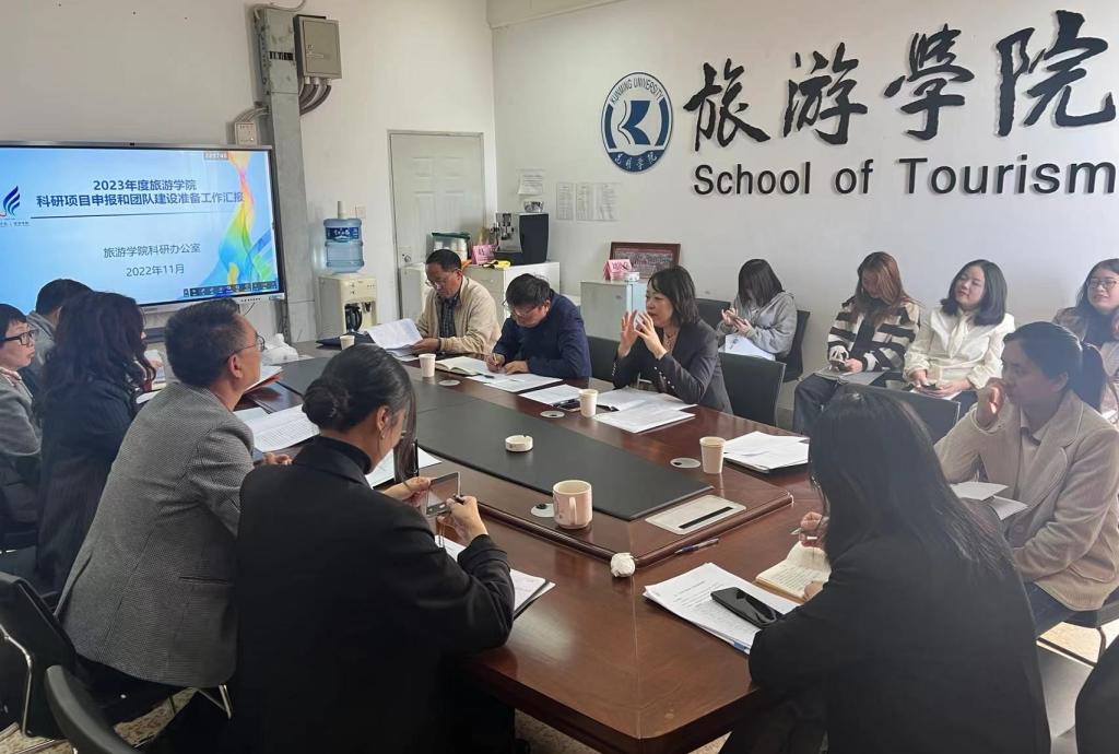调研会上,丁文丽校长反馈了旅游学院现代产业学院申报书的修改意见和建议。调研组围绕2023年国家基金及省部级项目申报、特色科研团队建设和科研成果奖申报等方面,认真听取了旅游学院的计划和准备情况,指出存在的问题短板,提出改进意见建议。
