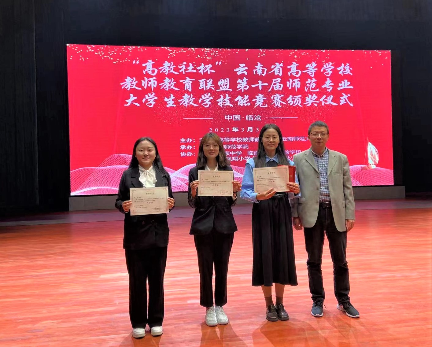 3月28日至30日,“高教社杯”云南省高等学校教师教育联盟第十届师范专业大学生教学技能竞赛决赛在临沧举办。数学学院选派的4名选手进入决赛,3人参加竞赛决赛现场赛,获省级一等奖1项,省级二等奖2项,省级三等奖1项,优秀指导教师奖1项。