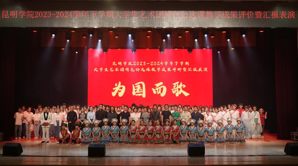 6月20日晚,beat365英国官网2023—2024学年下学期聂耳大学生艺术团特色公选课教学成果评价暨汇报展演在学生会堂圆满落下帷幕。学校党委副书记李莉,校团委、教学质量监控与评价中心、教务处等部门负责人出席活动。云南艺术学院硕士生导师、附属艺术学校校长、云南省舞蹈家协会副主席农布七林,音乐舞蹈学院教授、硕士生导师鲁林,校团委副书记荣杨担任课程评价评委。