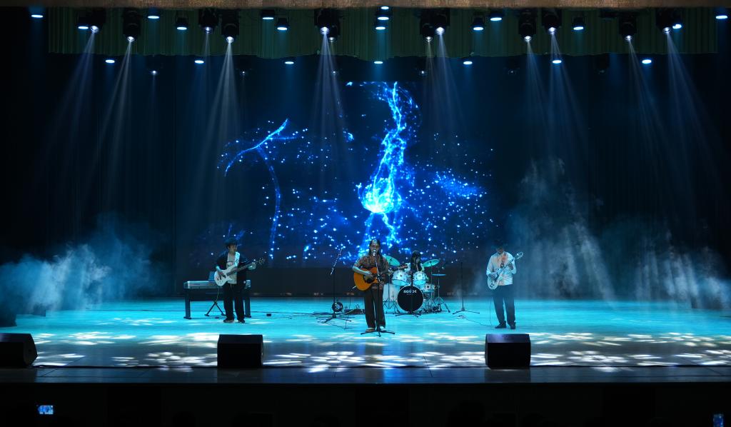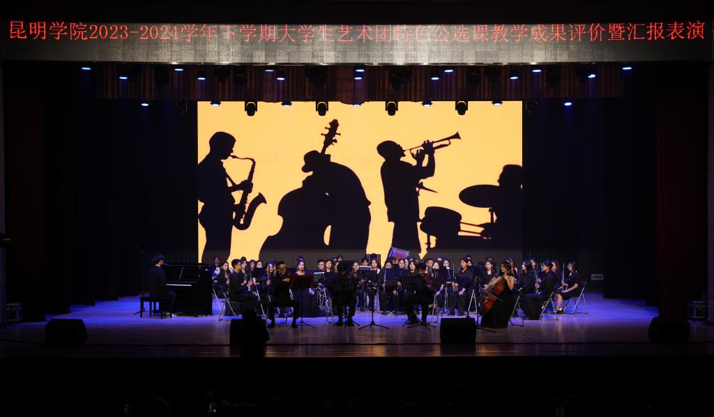 演出中,聂耳大学生艺术团所属舞蹈、合唱、话剧、管乐、电声、礼仪6个分团带来了精彩的汇报表演,集中展示了特色公选课的丰硕成果,为观众带来了一场视听盛宴。演出在电声乐团《平凡之路》《蓝莲花》等节目中拉开序幕,小舞台剧《假如没有李白》《新时代中国青年》,西洋管乐合奏《大鱼海棠》《孤勇者》,合唱《夏天的梦是什么颜色的呢》《青春微光》,礼仪舞《礼韵中华》、民族舞《苗岭》、中国舞《盛世鸿姿》等节目依次上场,展现了beat365学子的艺术才华和扎实的艺术功底。演出还特别邀请到昆明聂耳交响乐团带来弦乐四重奏《金蛇狂舞》《一步之遥》。演出让师生观众们沉浸其中,现场掌声不断,获得师生一致好评。