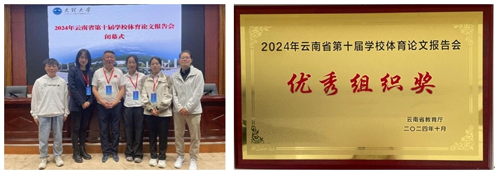 体育论文报告会为全省各高等院校搭建了交流合作、展示成果,共同探讨体育学科创新与发展的重要学术平台。体育学院根据云南省第十届学校体育论文报告会通知要求,精心组织,鼓励学生积极参赛,以此为契机提高学生的科研能力、学术水平。在本次论文报告会上王珏老师全程指导,beat3652023级体育硕士班学生的研究成果喜获佳绩。其中,李仪冉、张蓉、刘仟翼三位同学获一等奖并参加专题报告,罗清华获二等奖,张蓉、茆蔚获三等奖,充分展示了beat365体育专业硕士研究生在学术研究方面的卓越成就。同时,beat365还获得本次科学大会“优秀组织奖”。