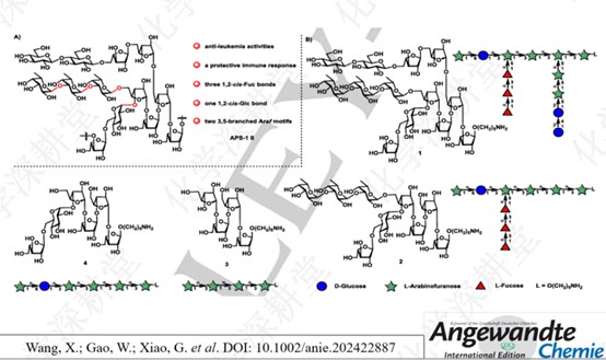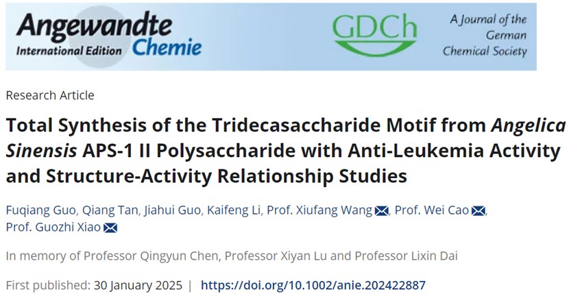 近日,化学化工学院王秀芳副教授指导的2022级硕士研究生郭富强以第一作者在化学领域国际顶级学术期刊《Angewandte Chemie International Edition》上发表了题为“Total Synthesis of the Tridecasaccharide Motif from Angelica Sinensis APS-1 II Polysaccharide with Anti-Leukemia Activity and Structure-Activity Relationship Studies”的研究论文。