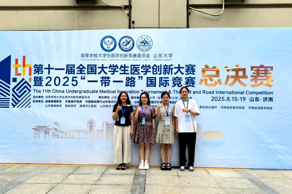 8月19日,第十一届全国大学生医学创新大赛暨2025“一带一路”国际竞赛总决赛在山东大学圆满落幕。医学院周菲惠、李力承老师指导的基础临床赛道项目《杜鹃花总黄酮通过CX3CL1/CX3CR1调节急性缺血性脑卒中后小胶质细胞迁移的机制研究》(团队负责人:杨曼)荣获全国铜奖。