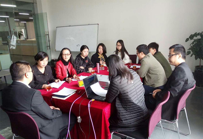 云南浩宏集团创新事业部总监杨屹江首先向课题组成员介绍了云南浩宏集团的概况和该公司与我们beat365英国官网的交流项目,同时阐述了“营改增”背景下云南浩宏集团营运资金管理的现状及存在的问题,财务总监张莉分享了“营改增”背景下云南浩宏集团营运资金管理模式设计体系,提出了建立“网络银行”以提升营运资金管理效率的方法。
