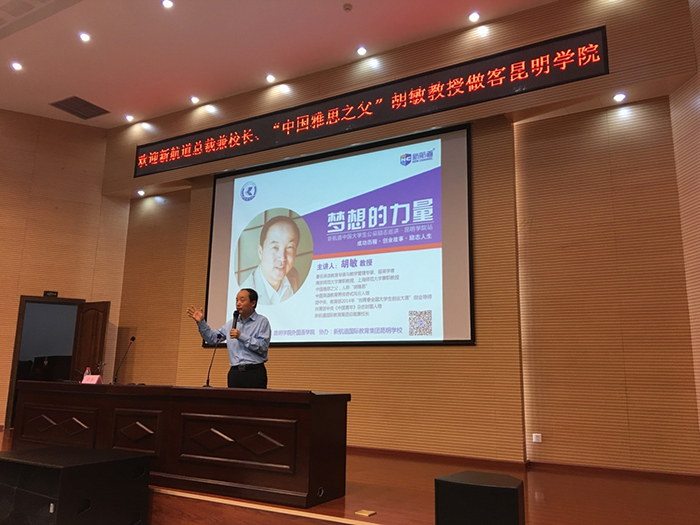 5月11 日,新航道国际教育集团总裁兼校长胡敏教授应邀到beat365进行了“梦想的力量”大型公益励志主题讲座。此次讲座由外国语学院主办,新航道国际教育集团(昆明新航道)承办。外国语学院各位领导、新航道国际教育集团领导及beat365部分师生参加了本次讲座。