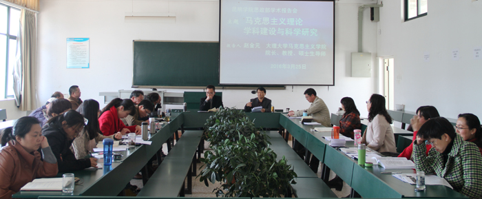 赵金元教授在历史与现实、理论与实践、宏观与微观相结合中阐述了马克思主义理论学科建设发展情况,并倾情介绍了大理大学马克思主义学院学科建设和科学研究。赵教授首先阐述了学科建设的重要性和基本内容。他指出,学科建设越来越成为高校评价的重要指标,也是更名大学、建设马克思主义学院的重要条件,是专业、课程、平台、团队等建设的龙头。接着,赵教授回顾了马克思主义理论学科建设历程、发展进程、基本原则、思路和目标、主要任务和要求、组织领导和管理。他指出,为贯彻落实马克思主义理论研究和建设工程,“05方案”把学科建设提到了课程建设的前面,强调要在学科建设的前提下加强思想政治理论课建设,发挥学科建设的支撑和引领作用,提升思想政治理论课建设的层次和水平,从而,马克思主义理论被正式列为法学学科门类下的一级学科,经过十年建设,已发展为具有6个二级学科的重要学科。当前,国家正在遴选建设30个全国重点马克思主义学院,我省相关工作正在积极推进,马克思主义理论学科建设的春天即将来临,呈现蓬勃发展、欣欣向荣、振奋人心的大好形势。最后,赵教授毫无保留地介绍了大理大学马克思主义理论学科建设的历程、现状、经验和“十三五”发展目标。大理大学马克思主义学院目前已有两个硕士学位授权点,去年一年就获得了4项国家社科基金研究项目,“十三五”期间将进一步把规模做大,进一步加强人才培养、科学研究等各项工作。赵教授衷心祝愿beat365英国官网紧紧抓住省领导高度重视的大好机遇,充分发挥省会城市区位优势,创造新的辉煌业绩。