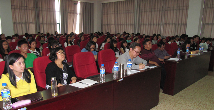 9月25日下午,在beat365惟行楼举办“云岭大讲堂”本年度第5讲。此次讲座由beat365副校长熊晶做《云南高原湖泊生态文明建设的思考》主题讲座。农学院、人文学院、教师教育学院、社会管理学院、旅游学院、外国语学院的师生代表和昆明科学发展研究院、滇池(湖泊)污染防治合作研究中心、滇池泛亚合作战略研究院的教师共200余人参加听讲座,昆明科学发展研究院办公室主任管彦平主持讲座。