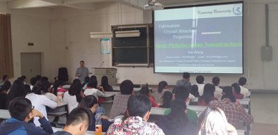 王海博士的讲座是关于金属酞菁纳米材料的研究情况。讲座上,王海博士对金属酞菁纳米材料研究的最新进展,金属酞菁纳米材料的制备、晶体结构与性能的研究情况进行了介绍。同时,王海及其研究团队还向新同学们展示了云南省高校有机光电子材料与器件重点实验室研究平台以及团队开展的相关研究工作。团队成员还结合自己的学习、科研情况对大学阶段的学习和生活给出了建议。王海认为自信和坚持在我们的学习和研究中是非常重要的。部分同学会后还参观了实验室。