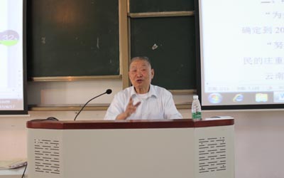 讲座中,年近8旬的黄仁跃老校长精神矍铄,他用自己从事农业工作50余年的经历,结合党中央的方针政策,多角度的介绍了我国目前的“三农”形势,解读了近几年中央1号文件精神;并以大量实例和数据,系统地分析了云南、昆明的“三农”发展现状和机遇挑战;同时就学习贯彻习近平总书记云南考察重要讲话精神,主动融入并服务国家战略,着力推动现代农业发展谈了思路和方法;对农学院师生提出“两点要求”和“一点希望”:要求同学们在学校要做到“学会做人、学会求知、学会健体”;要求同学们毕业以后要“学会做事、学会讲话、学会写文章”;希望师生要努力做到“为家庭谋幸福、为他人送温暖、为社会做贡献”。