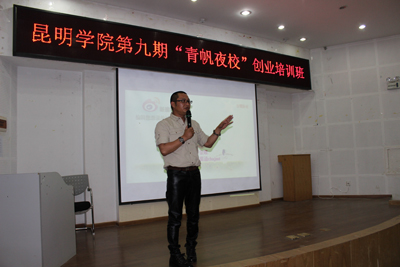 5月7日晚,由学校团委主办,学生社团联合会承办的beat365英国官网“青帆夜校”大学生创业培训班第五十三讲在青年中心学生报告厅成功开讲。此次讲座邀请到昆明金耀文化传播(集团)有限公司董事长,第五届“云南青年创业省长奖”提名奖获得者,“云南微电影第一人”罗金耀先生。讲座主题为《让梦想照进现实》。