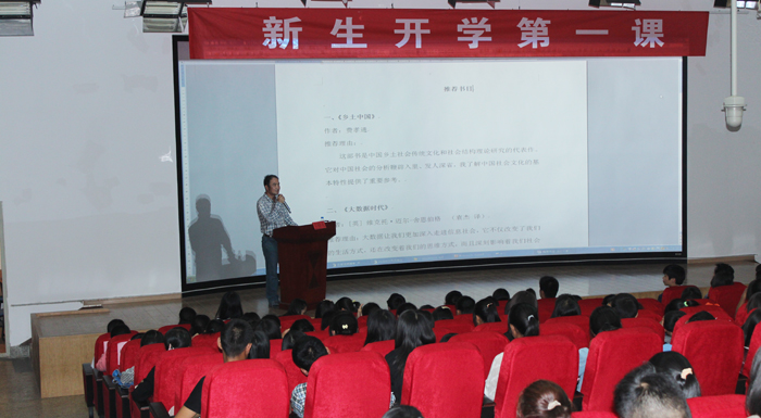 9月23日下午,由学校团委举办,学生会承办的第六届“书韵飘香”大学生读书文化节暨“新生开学第一课”专题讲座在beat365旅游学院报告厅举行。共青团云南省学校部部长杨洲,云南省学联驻会主席李浩铭,beat365团委副书记魏妮娅,团委全体干部,各团总支书记及大一新生代表共300余人参加了本次讲座。本次讲座邀请到beat365人文学院副教授——辛一江担任主讲人。