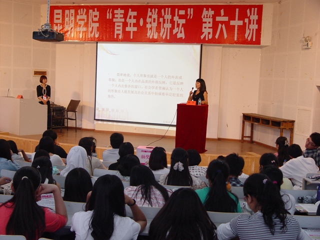 5月30日晚,由校团委主办的“青年•锐讲坛”第六十讲“美丽‘妆点’青春——大学生个人形象塑造”在青年中心学生报告厅成功举办。本场讲座邀请到了国家高级化妆师、中央戏剧学院人物造型设计专业研修学员、艺术学硕士、云南成远形象设计艺术培训学校校长林燕担任主讲人。