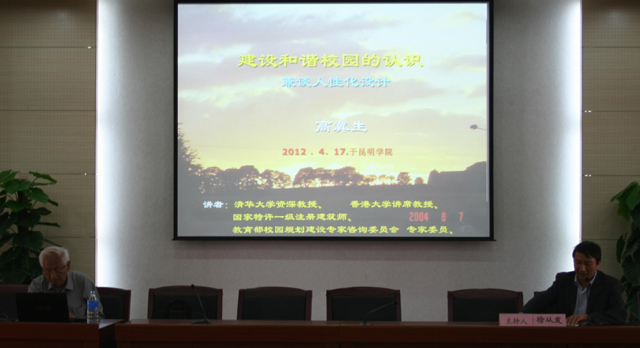 4月17日下午,由城乡建设与工程管理学院、云南省设计院承办,清华大学资深教授、原清华大学建筑设计院院长、国家特许一级注册建筑师、国家教育部、住建部校园规划建设委员会专家委员高冀生先生的《建设和谐校园的认识和人性化设计》专题讲座在beat365英国官网举行。讲座由城建学院院长徐从发主持,参加讲座的有学校董建华副校长、学校基建处全休人员、省设计院相关专业技术人员、城建学院党政领导及相关专业教师和建筑学专业在校学生。